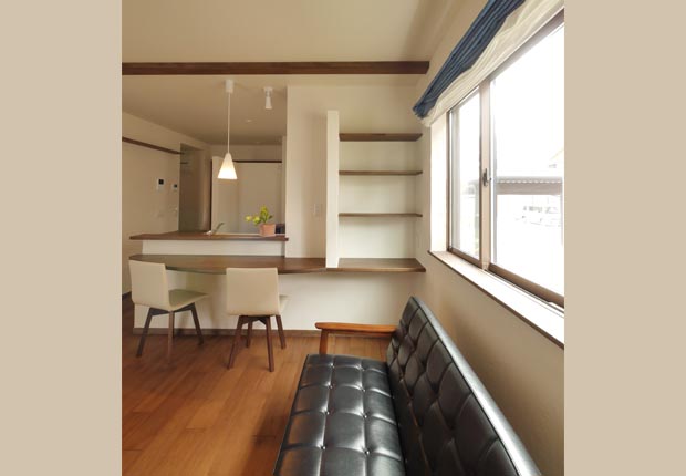 コストを抑える必要最小限のコンパクト設計ながら、断熱気密・機能デザインさらに将来変化するライフスタイルまで考慮したプランです。家庭菜園やガーデニングも楽しむことができ、日々の生活を豊かにします。朝の陽ざしがオリジナルの白いしっくいの壁を輝かせてくれます。